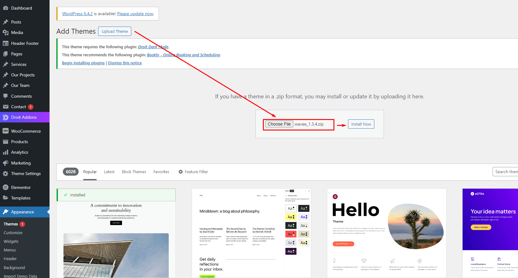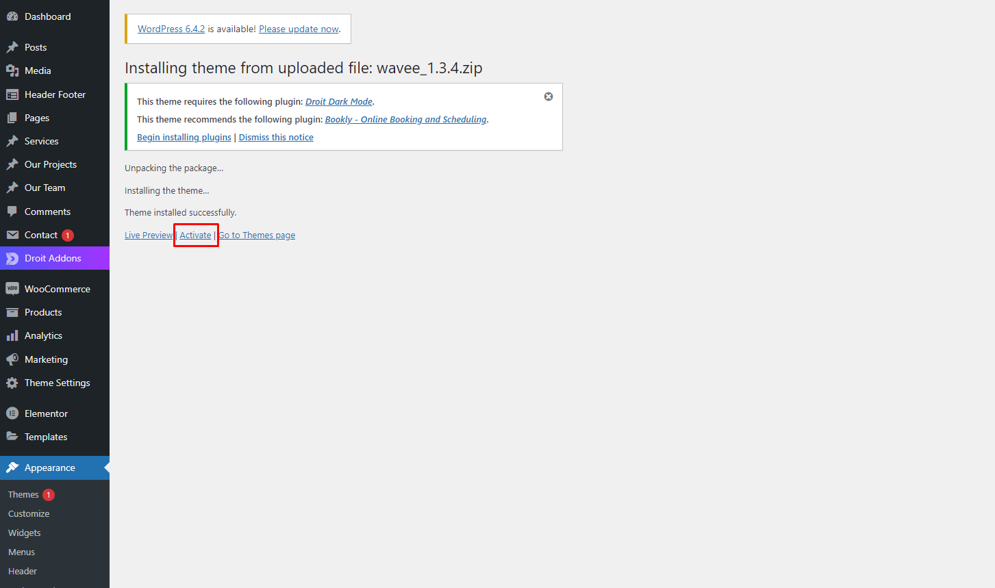 • Activate the newly installed theme by going to Appearance > Themes
